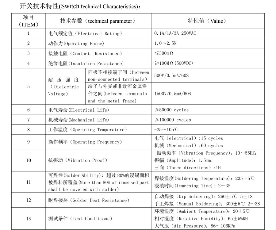 12 Solder Heat Resistance Dip Soldering :260±5℃ 5±1S