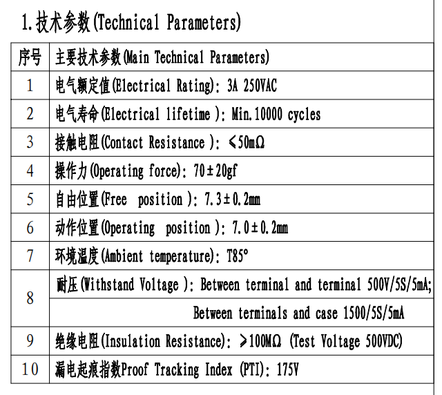Micro Switch Parameter (Specification)