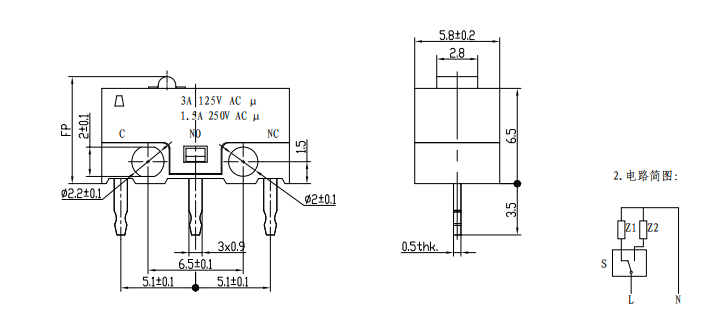 | 1 | Electrical Rating :1A/3A 250VAC |