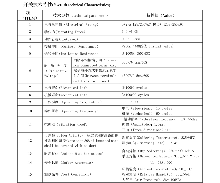 | 8 | Mechanical Life | ≥100000 cycles | |